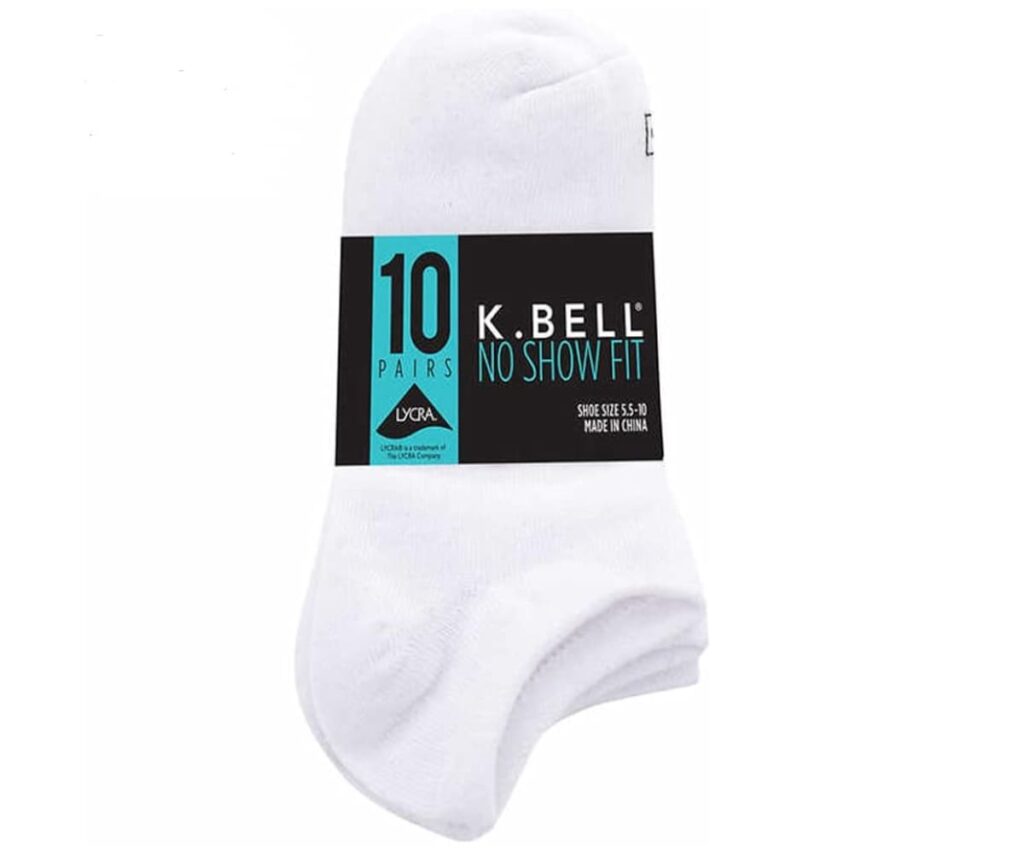 K. Bell offers a range of styles from no-show liners for sneakers and flats to crew and knee-high socks for boots or casual wear, providing a good fit for most footwear.
